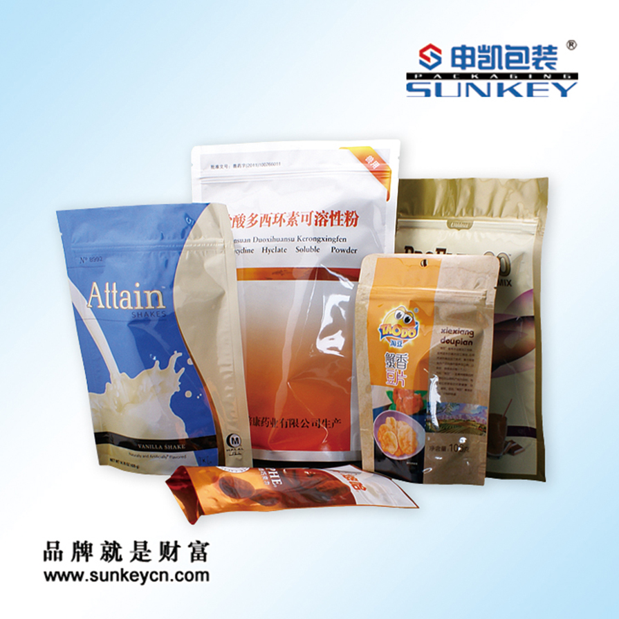 袋形:三边封、自立拉链袋、阴阳袋印刷:我公司有2台11色印刷机器,绝对可以保证套色的精度。
